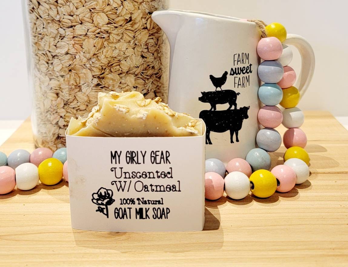 This unscented Goat Milk Soap with oatmeal and khalin clay powder is perfect for those with sensitive skin or anyone who prefers their soap to be free of scent.